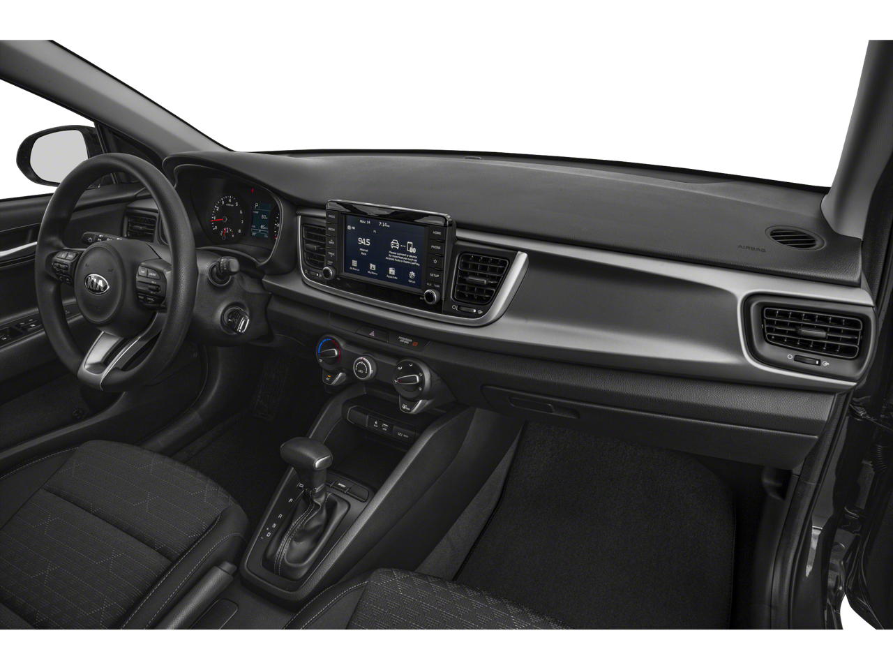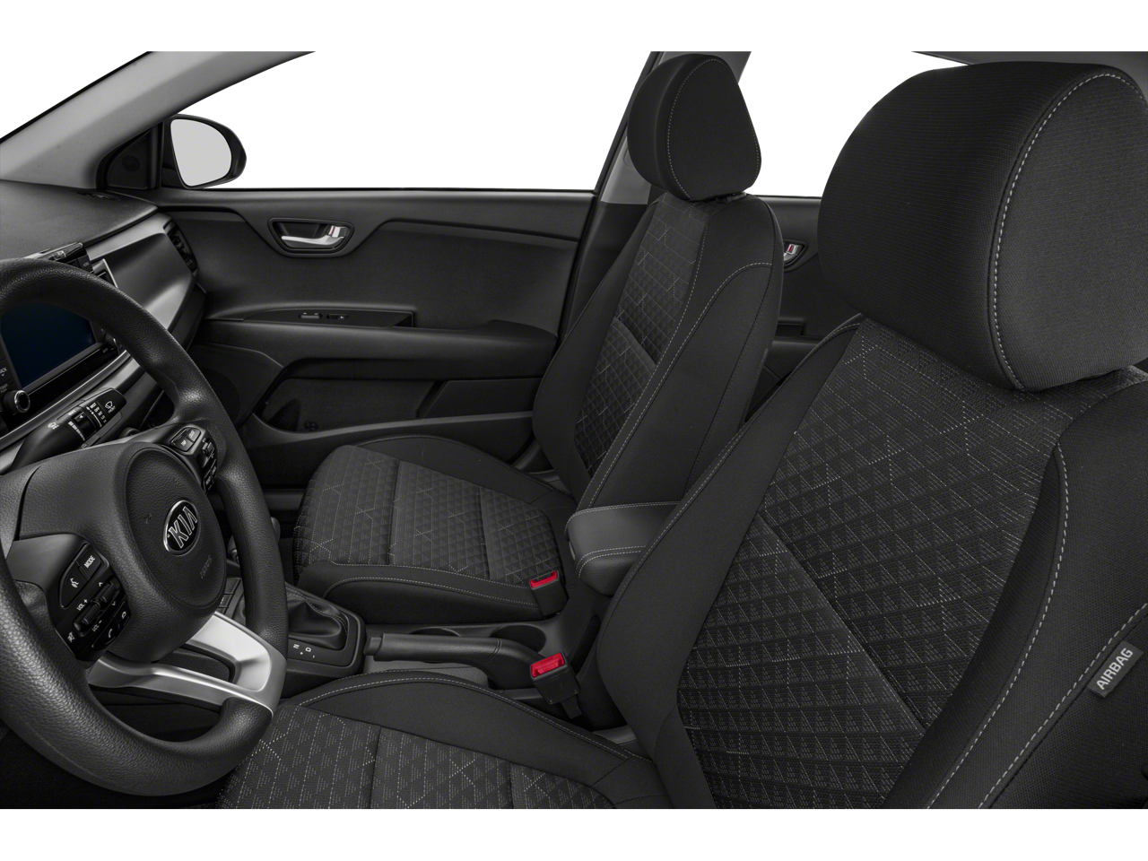 This vehicle comes equipped with: Black Cloth, 6 Speakers, ABS brakes, Air Conditioning, AM/FM radio, Apple CarPlay & Android Auto, Bluetooth® Wireless Technology, Brake assist, Bumpers: body-color, Cargo Net, Driver door bin, Driver vanity mirror, Dual front impact airbags, Dual front side impact airbags, Electronic Stability Control, Front anti-roll bar, Front Bucket Seats, Front reading lights, Front wheel independent suspension, Fully automatic headlights, Heated door mirrors, Illuminated entry, Low tire pressure warning, Occupant sensing airbag, Outside temperature display, Overhead airbag, Overhead console, Panic alarm, Passenger door bin, Passenger vanity mirror, Power door mirrors, Power steering, Power windows, Radio: AM/FM/MP3 Audio System, Rear window defroster, Speed-sensing steering, Steering wheel mounted audio controls, Tachometer, Tilt steering wheel, Traction control, Trip computer, Variably intermittent wipers, Wheels: 15" x 5.5J Steel w/Full Covers, and Woven Cloth Seat Trim .