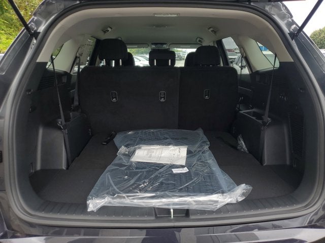 This vehicle comes equipped with: 17" Alloy Wheels, 3rd row seats: split-bench, 4-Wheel Disc Brakes, 6 Speakers, ABS brakes, Air Conditioning, All Weather Floor Mats, Alloy wheels, AM/FM radio: SiriusXM, Apple CarPlay & Android Auto, Auto High-beam Headlights, Brake assist, Bumpers: body-color, Cloth Seat Trim, Delay-off headlights, Driver door bin, Driver vanity mirror, Dual front impact airbags, Dual front side impact airbags, Electronic Stability Control, Emergency communication system: 911 Connect, Exterior Parking Camera Rear, Four wheel independent suspension, Front anti-roll bar, Front Bucket Seats, Front Center Armrest, Front reading lights, Fully automatic headlights, Heated door mirrors, Illuminated entry, Knee airbag, Leather Shift Knob, Leather steering wheel, Low tire pressure warning, Occupant sensing airbag, Outside temperature display, Overhead airbag, Overhead console, Panic alarm, Passenger door bin, Passenger vanity mirror, Power door mirrors, Power steering, Power windows, Radio data system, Radio: AM/FM Standard Sound System, Rear anti-roll bar, Rear reading lights, Rear seat center armrest, Rear side impact airbag, Rear window defroster, Rear window wiper, Remote keyless entry, Security system, Speed control, Speed-sensing steering, Split folding rear seat, Spoiler, Steering wheel mounted audio controls, Tachometer, Telescoping steering wheel, Tilt steering wheel, Traction control, Trip computer, Turn signal indicator mirrors, and Variably intermittent wipers .