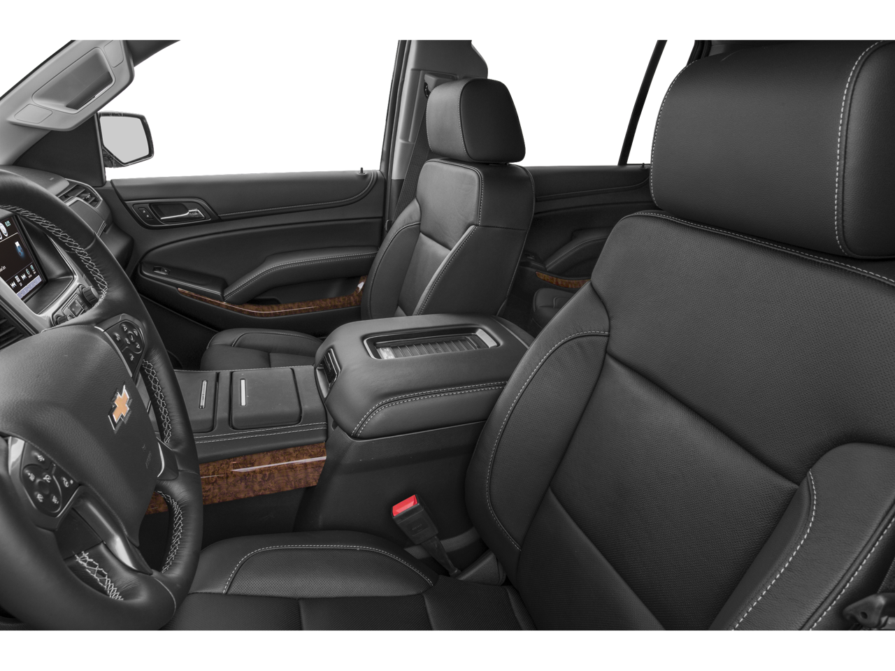 This vehicle comes equipped with License Plate Front Mounting Package, Magnetic Ride Control Suspension Package, Preferred Equipment Group 1LZ (3rd Row 60/40 Power Fold Split-Bench, Auto-Dimming Inside Rear-View Mirror, Color-Keyed Heated Leather-Wrapped Steering Wheel, Driver & Front Passenger Airbags, Floor Console w/Storage Area, Fog Lamps, Forward Collision Alert Sensor Indicator, Front & Rear Parking Assist, Hands Free Power Liftgate, Heated 2nd Row Seats, Heavy-Duty Locking Rear Differential (DISC), Keyless Start Switch, Lane Departure Warning & Safety Alert Seat, Memory Settings, Passive Entry System, Power Folding & Adjustable Heated Outside Mirrors, Power Release 2nd Row Bucket Seats, Power Tilt & Telescoping Steering Column, Power-Adjustable Accelerator & Brake Pedals, Rear Cross-Traffic Alert Sensor Indicator, Side Blind Zone Alert w/Lane Change Alert, Universal Home Remote, and Wireless Charging), Sun, Entertainment & Destinations Package (Power Tilt-Sliding Sunroof w/Express-Open/Close, Rear Seat Entertainment System, and 3rd Row DVD Screen), Navigation System, 10 Speakers, 3.08 Rear Axle Ratio, 3rd row seats: split-bench, 4-Wheel Disc Brakes, ABS brakes, Adaptive suspension, Adjustable pedals, Air Conditioning, All-Weather Floor Mats, Alloy wheels, AM/FM radio: SiriusXM, Auto-dimming door mirrors, Auto-dimming Rear-View mirror, Automatic temperature control, Bodyside moldings, Bose Centerpoint Surround Sound 10-Speaker System, Brake assist, Bumpers: body-color, CD player, Compass, Delay-off headlights, Driver door bin, Driver vanity mirror, Dual front impact airbags, Dual front side impact airbags, Electronic Stability Control, Emergency communication system: OnStar Directions & Connections, Exterior Parking Camera Rear, Front anti-roll bar, Front Bucket Seats, Front Center Armrest, Front dual zone A/C, Front fog lights, Front reading lights, Front Reclining Bucket Seats, Front wheel independent suspension, Fully automatic headlights, Garage door transmitter, Headphones, Heated & Cooled Driver & Front Passenger Seats, Heated door mirrors, Heated front seats, Heated rear seats, Heated steering wheel, High-Intensity Discharge Headlights, Illuminated entry, Leather Shift Knob, Low tire pressure warning, Memory seat, Occupant sensing airbag, OnStar w/4G LTE, Outside temperature display, Overhead airbag, Overhead console, Panic alarm, Passenger door bin, Passenger vanity mirror, Pedal memory, Perforated Leather-Appointed Seat Trim, Power door mirrors, Power driver seat, Power Liftgate, Power passenger seat, Power steering, Power windows, Radio: Chevrolet MyLink w/Navigation/AM/FM Stere