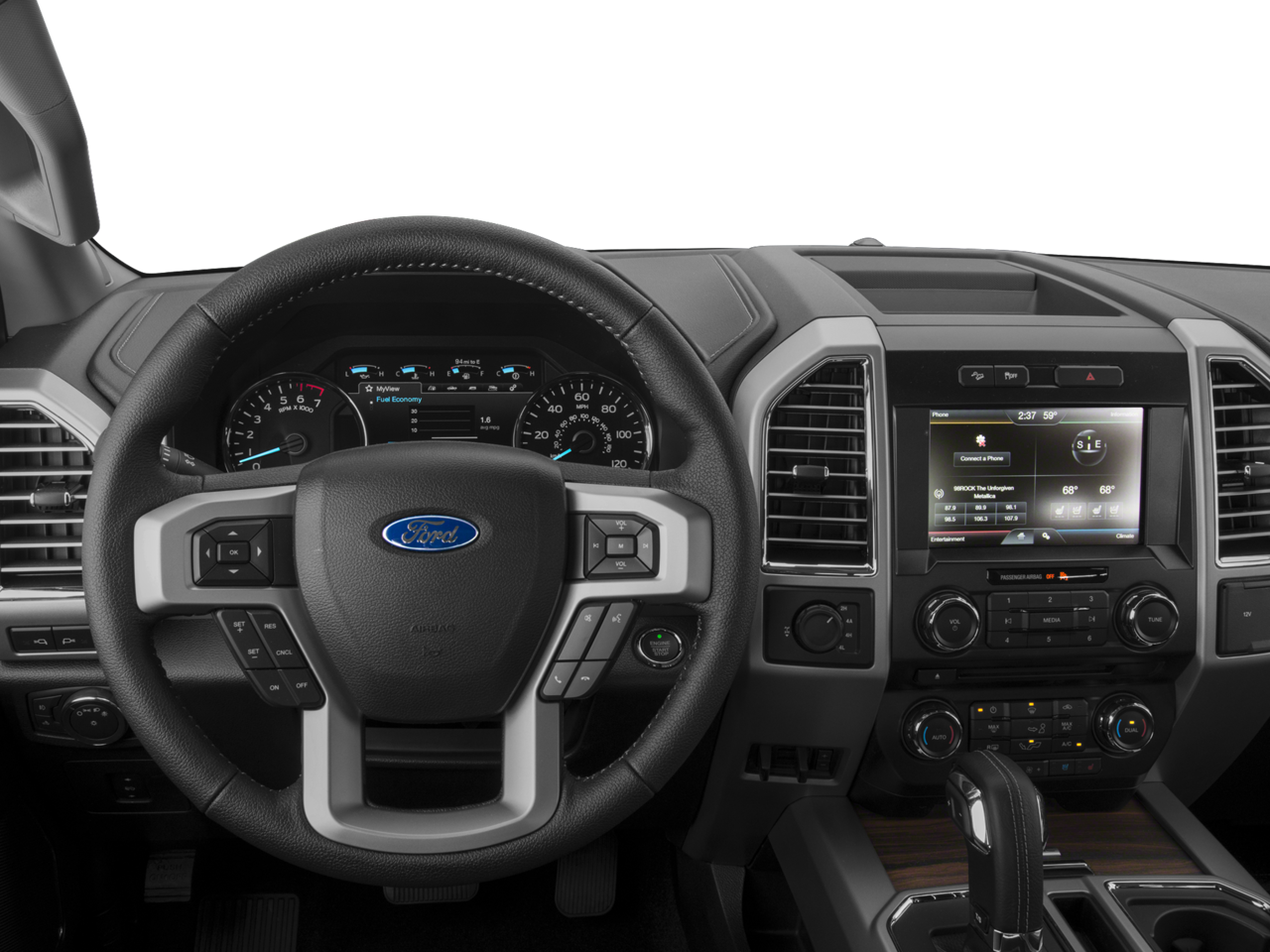 This vehicle comes equipped with: Equipment Group 502A Luxury, FX4 Off-Road Package, Lariat Sport Appearance Package (Accent-Color 3-Bar Style Grille, Accent-Color Angular Step Bars, Body-Color Front & Rear Bumpers, Box Side Decal, Single-Tip Chrome Exhaust, and Wheels: 18 6-Spoke Machined-Aluminum), Trailer Tow Package (Auxiliary Transmission Oil Cooler, Class IV Trailer Hitch Receiver, Engine Oil Cooler, Pro Trailer Backup Assist, and Upgraded Front Stabilizer Bar), 4WD, 18 Machined-Aluminum Wheels, 3.31 Axle Ratio, 4-Wheel Disc Brakes, 7 Speakers, ABS brakes, Adjustable pedals, Air Conditioning, All-Weather Rubber Floor Mats, Alloy wheels, AM/FM radio: SiriusXM, Auto-dimming door mirrors, Auto-dimming Rear-View mirror, Automatic temperature control, Brake assist, Bumpers: chrome, CD player, Compass, Delay-off headlights, Driver door bin, Driver vanity mirror, Dual front impact airbags, Dual front side impact airbags, Electronic Locking w/3.31 Axle Ratio, Electronic Stability Control, Exterior Parking Camera Rear, Front anti-roll bar, Front Center Armrest w/Storage, Front dual zone A/C, Front fog lights, Front reading lights, Front wheel independent suspension, Fully automatic headlights, Heated door mirrors, Heated front seats, Illuminated entry, Leather-Trimmed 40/20/40 Front Seat, Low tire pressure warning, Memory seat, Occupant sensing airbag, Outside temperature display, Overhead airbag, Overhead console, Panic alarm, Passenger door bin, Passenger vanity mirror, Pedal memory, Power door mirrors, Power driver seat, Power passenger seat, Power steering, Power windows, Radio data system, Radio: Single-CD w/SiriusXM Satellite, Rear reading lights, Rear seat center armrest, Rear step bumper, Rear window defroster, Remote keyless entry, Security system, Speed control, Speed-sensing steering, Split folding rear seat, Spray-In Bedliner (Pre-Installed), Steering wheel mounted audio controls, SYNC 3, Tachometer, Telescoping Power Glass Trailer Tow Mirrors w/Heat, Telescoping steering wheel, Tilt steering wheel, Traction control, Trip computer, Turn signal indicator mirrors, Variably intermittent wipers, Ventilated front seats, Voltmeter, and Wheel Well Liner (Pre-Installed)