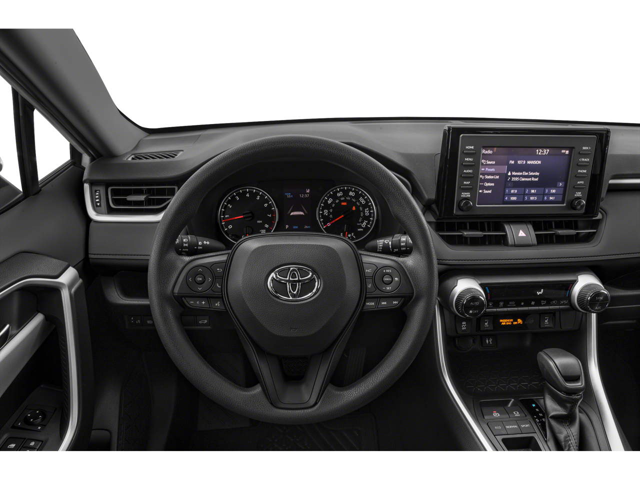 This vehicle comes equipped with: Cloth, 17 x 7.0J Alloy Wheels, 4-Wheel Disc Brakes, 6 Speakers, ABS brakes, Air Conditioning, Alloy wheels, AM/FM radio, Apple CarPlay, Auto High-beam Headlights, Automatic temperature control, Axle Ratio: 3.177, Brake assist, Bumpers: body-color, Delay-off headlights, Driver door bin, Driver vanity mirror, Dual front impact airbags, Dual front side impact airbags, Electronic Stability Control, Emergency communication system: Entune Safety Connect, Exterior Parking Camera Rear, Fabric Seat Trim, Four wheel independent suspension, Front anti-roll bar, Front Bucket Seats, Front Center Armrest, Front dual zone A/C, Front fog lights, Front reading lights, Fully automatic headlights, Heated door mirrors, Illuminated entry, Knee airbag, Low tire pressure warning, Occupant sensing airbag, Outside temperature display, Overhead airbag, Overhead console, Panic alarm, Passenger door bin, Passenger vanity mirror, Power door mirrors, Power moonroof, Power steering, Power windows, Radio data system, Radio: Entune 3.0 Audio, Rear anti-roll bar, Rear seat center armrest, Rear window defroster, Rear window wiper, Remote keyless entry, Roof rack: rails only, Speed control, Speed-sensing steering, Split folding rear seat, Spoiler, Steering wheel mounted audio controls, Tachometer, Telescoping steering wheel, Tilt steering wheel, Traction control, Trip computer, Turn signal indicator mirrors, and Variably intermittent wipers.