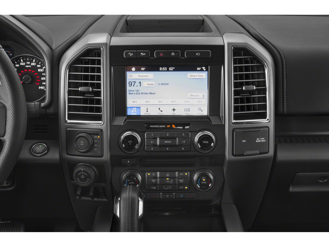 - Full Floor Console w/Locking Storage, Mini Overhead Console w/Storage, 3 12V DC Power Outlets and 2 Interior 120V AC Power Outlets
