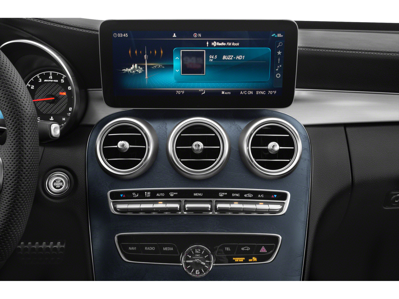 This vehicle comes equipped with : 13 Speakers, 4-Way Lumbar Support, 4-Wheel Disc Brakes, ABS brakes, Adaptive suspension, Air Conditioning, Alloy wheels, AM/FM radio: SiriusXM, Android Auto®, Apple CarPlay®, Apple CarPlay®/Android Auto®, Auto tilt-away steering wheel, Auto-dimming door mirrors, Auto-dimming Rear-View mirror, Automatic temperature control, Brake assist, Bumpers: body-color, Burmester® Surround Sound System, Compass, Delay-off headlights, Driver door bin, Driver vanity mirror, Dual front impact airbags, Dual front side impact airbags, Electronic Stability Control, Emergency communication system: Mercedes me connect, Exterior Parking Camera Rear, Four wheel independent suspension, Front anti-roll bar, Front Bucket Seats, Front Center Armrest, Front dual zone A/C, Front reading lights, Fully automatic headlights, Garage door transmitter: Homelink, Genuine wood console insert, Genuine wood dashboard insert, Genuine wood door panel insert, HD Radio, Head restraints memory, Heated door mirrors, Heated front seats, Illuminated entry, Knee airbag, Low tire pressure warning, MB-TEX/DINAMICA Upholstery, Memory seat, Occupant sensing airbag, Outside temperature display, Overhead airbag, Overhead console, Panic alarm, Passenger door bin, Passenger vanity mirror, Performance Tires, Power adjustable front head restraints, Power door mirrors, Power driver seat, Power Driver Seat & Steering Column w/Memory, Power Heated Front Seats w/Memory, Power moonroof, Power passenger seat, Power Passenger Seat w/Memory, Power steering, Power windows, Radio data system, Radio: Audio 20, Rain sensing wipers, Rear anti-roll bar, Rear fog lights, Rear reading lights, Rear seat center armrest, Rear side impact airbag, Rear window defroster, Remote keyless entry, Security system, SiriusXM Satellite Radio, Smartphone Integration, Speed control, Speed-sensing steering, Split folding rear seat, Spoiler, Sport steering wheel, Steering wheel memory, Steering wheel mounted audio controls, Tachometer, Telescoping steering wheel, Tilt steering wheel, Traction control, Trip computer, Turn signal indicator mirrors, Variably intermittent wipers, Weather band radio, and Wheels: 18" AMG® 10-Spoke.
