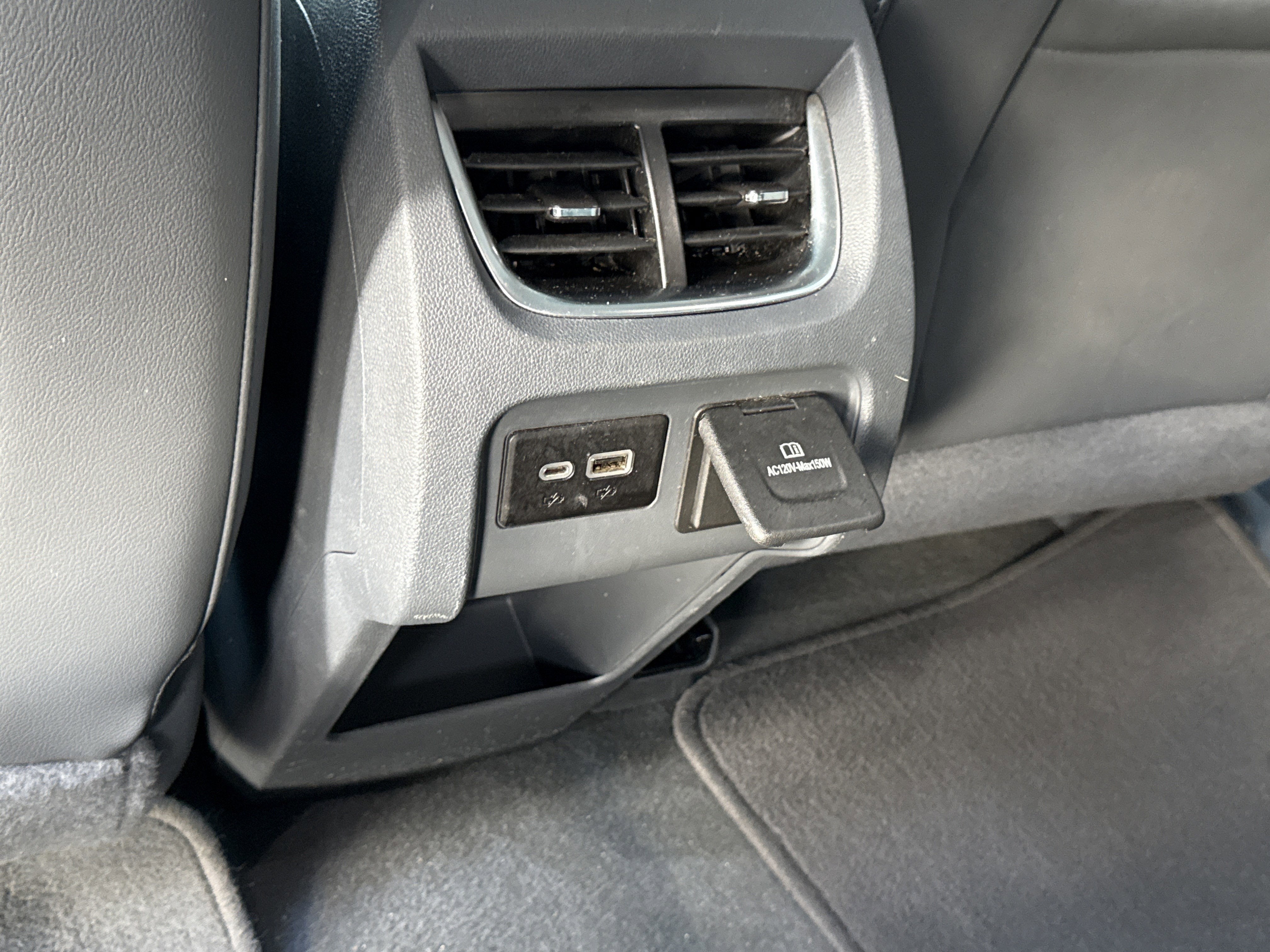 - USB charging-only ports 2, one type-A and one type-C, located on rear of center console