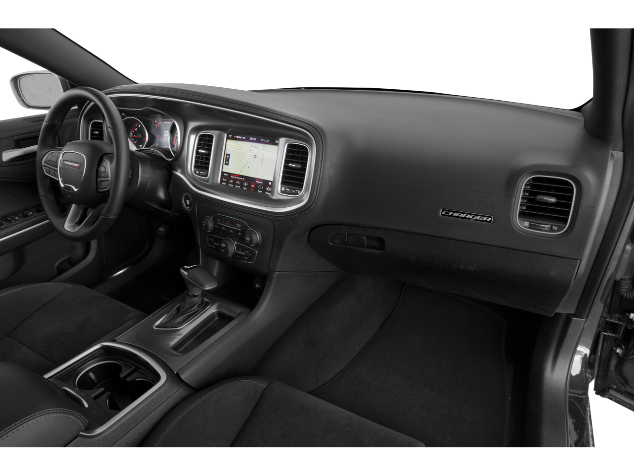 This Vehicle is nicely equipped with the following features: Blacktop Package (Black 1-Piece Performance Spoiler, Black Badge, Black Dodge Grille Badge, Gloss Black I/P Cluster Trim Rings, Satin Black Charger Decklid Badge, Satin Black Dodge Tail Lamp Badge, and Wheels: 20 x 8.0 Black Noise Painted), Quick Order Package 2EH, Black Cloth, 4-Wheel Disc Brakes, 6 Speakers, ABS brakes, Air Conditioning, Alloy wheels, AM/FM radio: SiriusXM, Anti-whiplash front head restraints, Apple CarPlay/Android Auto, Auto-dimming Rear-View mirror, Automatic temperature control, Brake assist, Bumpers: body-color, Cloth Performance Seats, Compass, Delay-off headlights, Driver door bin, Driver vanity mirror, Dual front impact airbags, Dual front side impact airbags, Electronic Stability Control, Emergency communication system: SiriusXM Guardian, Four wheel independent suspension, Front anti-roll bar, Front Bucket Seats, Front Center Armrest, Front dual zone A/C, Front fog lights, Front reading lights, Fully automatic headlights, Garage door transmitter: HomeLink, Heated door mirrors, Illuminated entry, Knee airbag, Leather Shift Knob, Low tire pressure warning, Occupant sensing airbag, Outside temperature display, Overhead airbag, Overhead console, Panic alarm, ParkView Rear Back-Up Camera, Passenger door bin, Passenger vanity mirror, Power door mirrors, Power driver seat, Power steering, Power windows, Radio data system, Radio: Uconnect 4C w/8.4 Display, Rear anti-roll bar, Rear reading lights, Rear seat center armrest, Rear window defroster, Remote keyless entry, Speed control, Speed-Sensitive Wipers, Split folding rear seat, Spoiler, Sport steering wheel, Steering wheel mounted audio controls, Tachometer, Telescoping steering wheel, Tilt steering wheel, Traction control, Trip computer, Variably intermittent wipers, and Wheels: 20 x 8.0 Satin Carbon Painted.