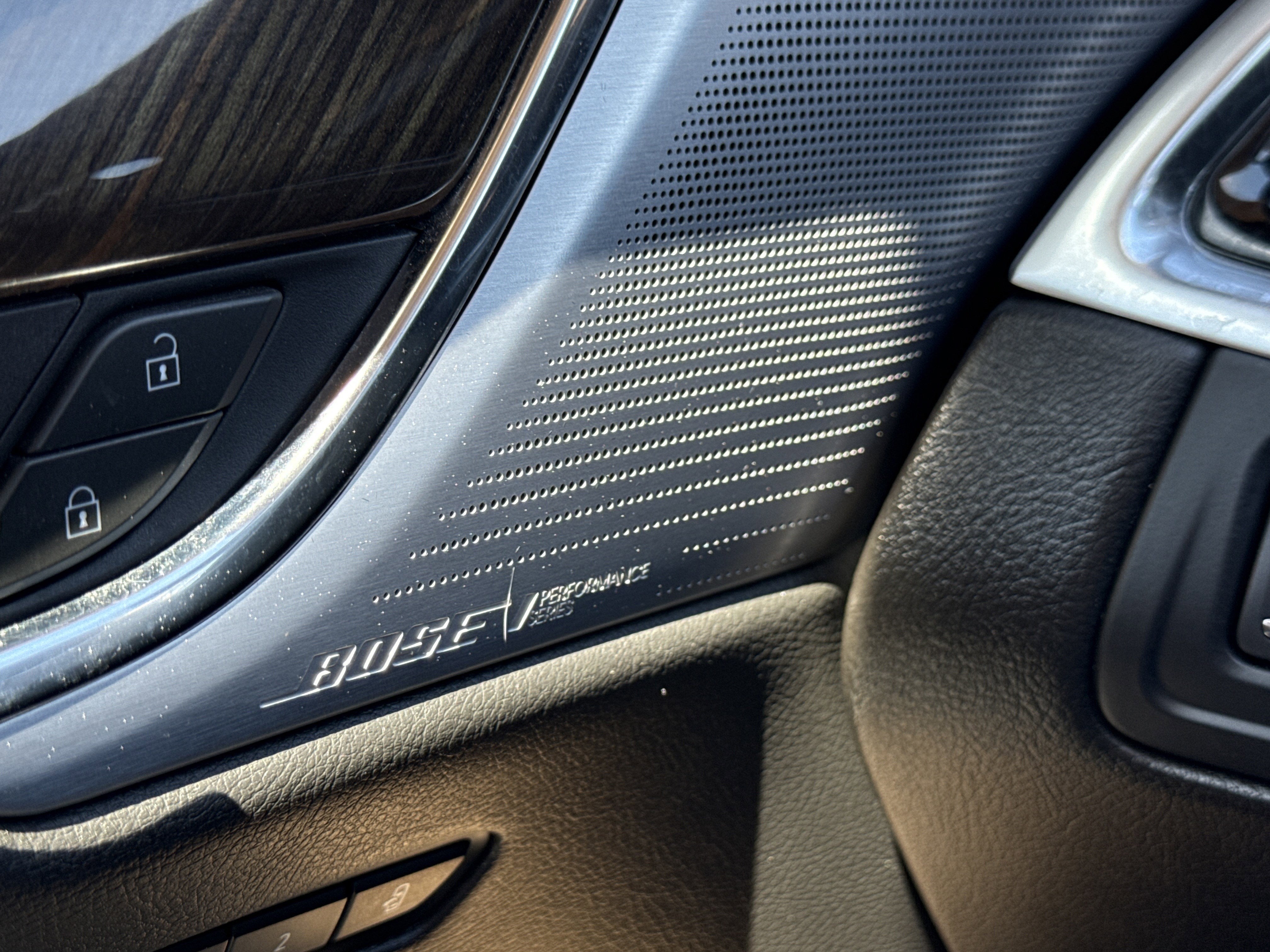 - Audio system feature, Bose Performance Series 14-speaker system includes Cadillac speaker grille pattern