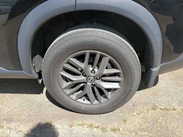 This vehicle comes equipped with: 17" Aluminum Alloy Wheels, 4 Speakers, 4-Wheel Disc Brakes, 5.604 Axle Ratio, ABS brakes, Air Conditioning, Alloy wheels, AM/FM Radio, AM/FM radio: SiriusXM, Auto High-beam Headlights, Black Splash Guards (Set of 4), Blind Spot Warning, Brake assist, Bumpers: body-color, Cloth Seat Trim, Delay-off headlights, Driver door bin, Driver vanity mirror, Dual front impact airbags, Dual front side impact airbags, Electronic Stability Control, First Aid Kit, Floor Mats w/1-Piece Cargo Area Protector, Four wheel independent suspension, Front anti-roll bar, Front Bucket Seats, Front Center Armrest, Front reading lights, Fully automatic headlights, Illuminated entry, Knee airbag, Low tire pressure warning, NissanConnect featuring Apple CarPlay and Android Auto, Occupant sensing airbag, Outside temperature display, Overhead airbag, Overhead console, Panic alarm, Passenger door bin, Passenger vanity mirror, Power door mirrors, Power steering, Power windows, Radio data system, Rear anti-roll bar, Rear Parking Sensors, Rear seat center armrest, Rear side impact airbag, Rear window defroster, Rear window wiper, Remote keyless entry, Speed control, Speed-Sensitive Wipers, Split folding rear seat, Spoiler, Steering wheel mounted audio controls, Tachometer, Telescoping steering wheel, Tilt steering wheel, Traction control, Trip computer, and Variably intermittent wipers .
