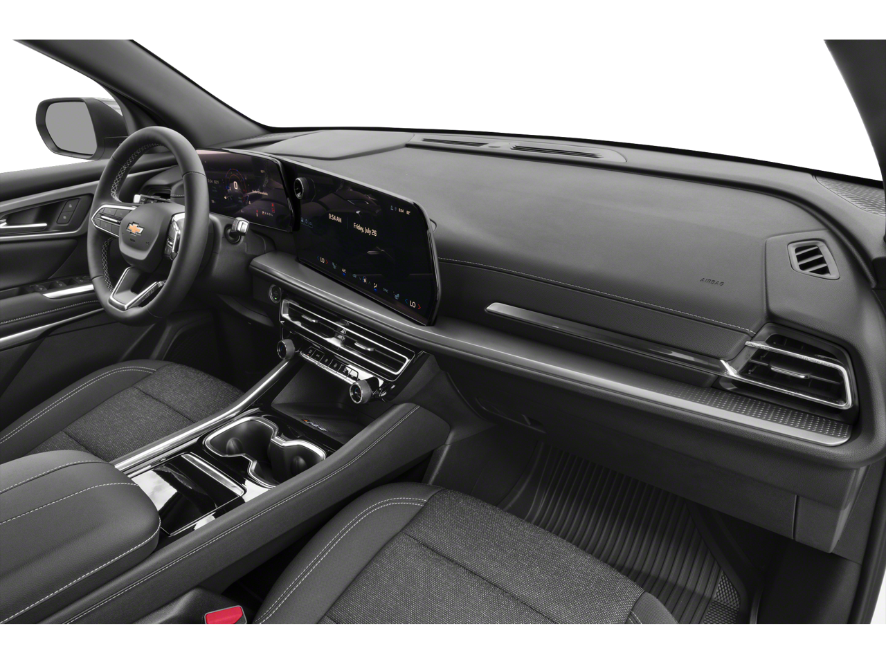 This vehicle comes equipped with: Midnight/Sport Edition (High Gloss Black Door Upper Molding and Wheels: 20 High Gloss Black Painted Aluminum), Preferred Equipment Group 1LT, 3rd row seats: split-bench, 4-Way Manual Front Passenger Seat Adjuster, 4-Wheel Disc Brakes, 6 Speakers, 6-Speaker Audio System Feature, 8-Way Power Driver Seat Adjuster, ABS brakes, Air Conditioning, Alloy wheels, AM/FM radio: SiriusXM with 360L, Apple CarPlay/Android Auto, Auto High-beam Headlights, Automatic temperature control, Brake assist, Bumpers: body-color, Compass, Delay-off headlights, Driver 4-Way Power Lumbar Seat Adjuster, Driver door bin, Driver vanity mirror, Dual front impact airbags, Dual front side impact airbags, Electronic Stability Control, Emergency communication system, Exterior Parking Camera Rear, Four wheel independent suspension, Front anti-roll bar, Front Bucket Seats, Front Center Armrest, Front dual zone A/C, Front reading lights, Fully automatic headlights, Heated door mirrors, Heated front seats, Heated steering wheel, Illuminated entry, Low tire pressure warning, Navigation System, Occupant sensing airbag, Outside temperature display, Overhead airbag, Overhead console, Panic alarm, Passenger door bin, Passenger vanity mirror, Power door mirrors, Power driver seat, Power Liftgate, Power steering, Power windows, Premium Cloth Seat Trim, Radio data system, Radio: 17.7 Diagonal Display, Rear air conditioning, Rear anti-roll bar, Rear reading lights, Rear window defroster, Rear window wiper, Remote keyless entry, Security system, SiriusXM w/360L, Speed control, Speed-sensing steering, Spoiler, Steering wheel mounted audio controls, Tachometer, TBD Axle Ratio, Telescoping steering wheel, Tilt steering wheel, Traction control, Trip computer, Turn signal indicator mirrors, Variably intermittent wipers, Voltmeter, and Wheels: 18 Grazen Metallic Machined-Face Aluminum.