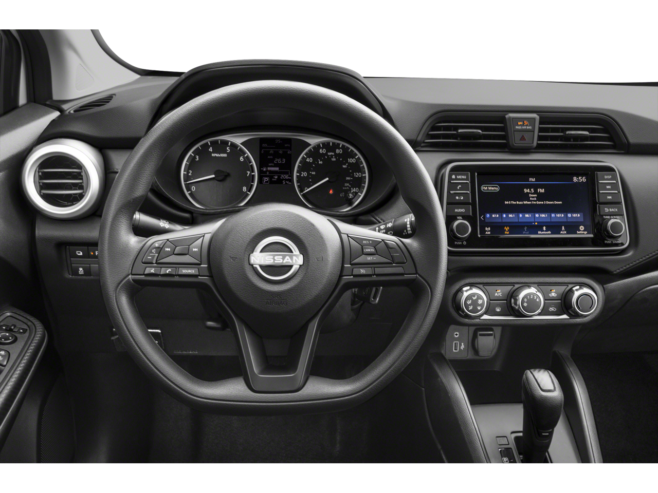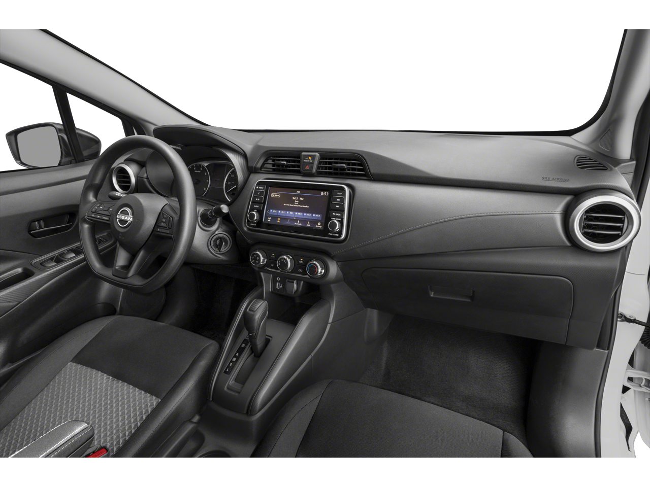 This vehicle comes equipped with: S Plus Package (16" Alloy Wheels, 60/40 Split Rear Seat, and NissanConnect w/Apple CarPlay & Android Auto), Trunk Package (Shopping Bag Hooks and Trunk Net), 15" Steel Wheels w/Full Wheel Covers, 4 Speakers, ABS brakes, Air Conditioning, AM/FM radio, Auto High-beam Headlights, Brake assist, Bumpers: body-color, Carpeted Floor Mats, Cloth Seat Trim, Driver door bin, Driver vanity mirror, Dual front impact airbags, Dual front side impact airbags, Electronic Stability Control, Front anti-roll bar, Front Bucket Seats, Front reading lights, Front wheel independent suspension, Fully automatic headlights, Illuminated entry, Knee airbag, Low tire pressure warning, Occupant sensing airbag, Outside temperature display, Overhead airbag, Panic alarm, Passenger door bin, Passenger vanity mirror, Power door mirrors, Power steering, Power windows, Radio data system, Radio: AM/FM Audio System, Rear Parking Sensors, Rear side impact airbag, Rear window defroster, Speed control, Splash Guards, Steering wheel mounted audio controls, Tachometer, Telescoping steering wheel, Tilt steering wheel, Traction control, Trip computer, and Variably intermittent wipers .
