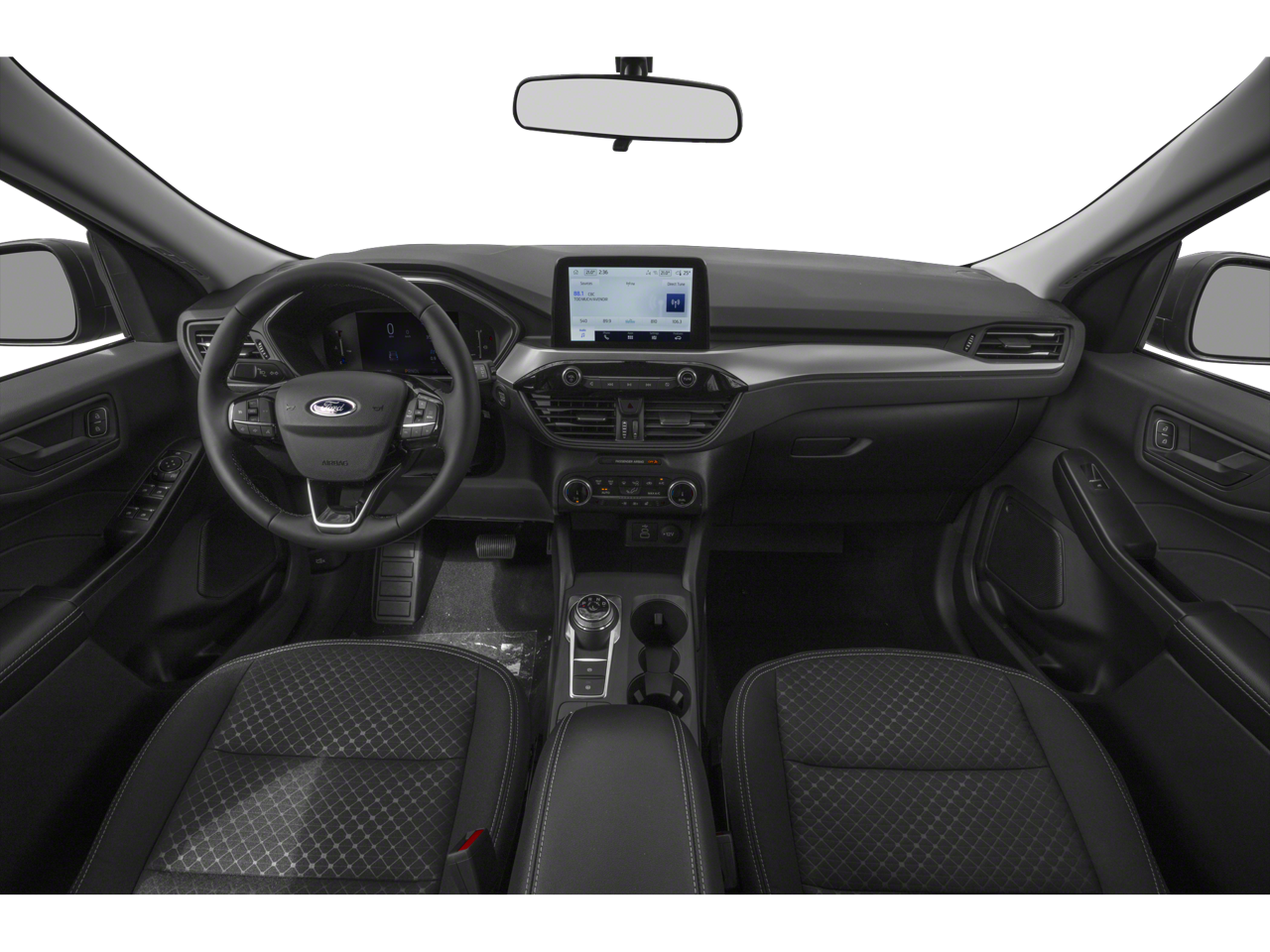 This vehicle comes equipped with: Equipment Group 200A, AWD, 3.81 Axle Ratio, 4-Wheel Disc Brakes, 6 Speakers, ABS brakes, Air Conditioning, Alloy wheels, AM/FM radio: SiriusXM, AM/FM Stereo, Auto High-beam Headlights, Automatic temperature control, Brake assist, Bumpers: body-color, Compass, Delay-off headlights, Driver door bin, Driver vanity mirror, Dual front impact airbags, Dual front side impact airbags, Electronic Stability Control, Emergency communication system: SYNC 4 911 Assist, FordPass Connect, Four wheel independent suspension, Front anti-roll bar, Front Bucket Seats, Front Center Armrest, Front dual zone A/C, Front reading lights, Fully automatic headlights, Illuminated entry, Internet access capable: FordPass Connect 4G, Knee airbag, Low tire pressure warning, Occupant sensing airbag, Outside temperature display, Overhead airbag, Overhead console, Panic alarm, Passenger door bin, Passenger vanity mirror, Power door mirrors, Power steering, Power windows, Radio data system, Rear anti-roll bar, Rear reading lights, Rear seat center armrest, Rear window defroster, Rear window wiper, Remote keyless entry, Speed control, Speed-sensing steering, Speed-Sensitive Wipers, Split folding rear seat, Spoiler, Steering wheel mounted audio controls, SYNC 4, Tachometer, Telescoping steering wheel, Tilt steering wheel, Traction control, Trip computer, Unique Cloth Front Bucket Seats, Variably intermittent wipers, and Wheels: 17 Shadow Silver-Painted Aluminum.