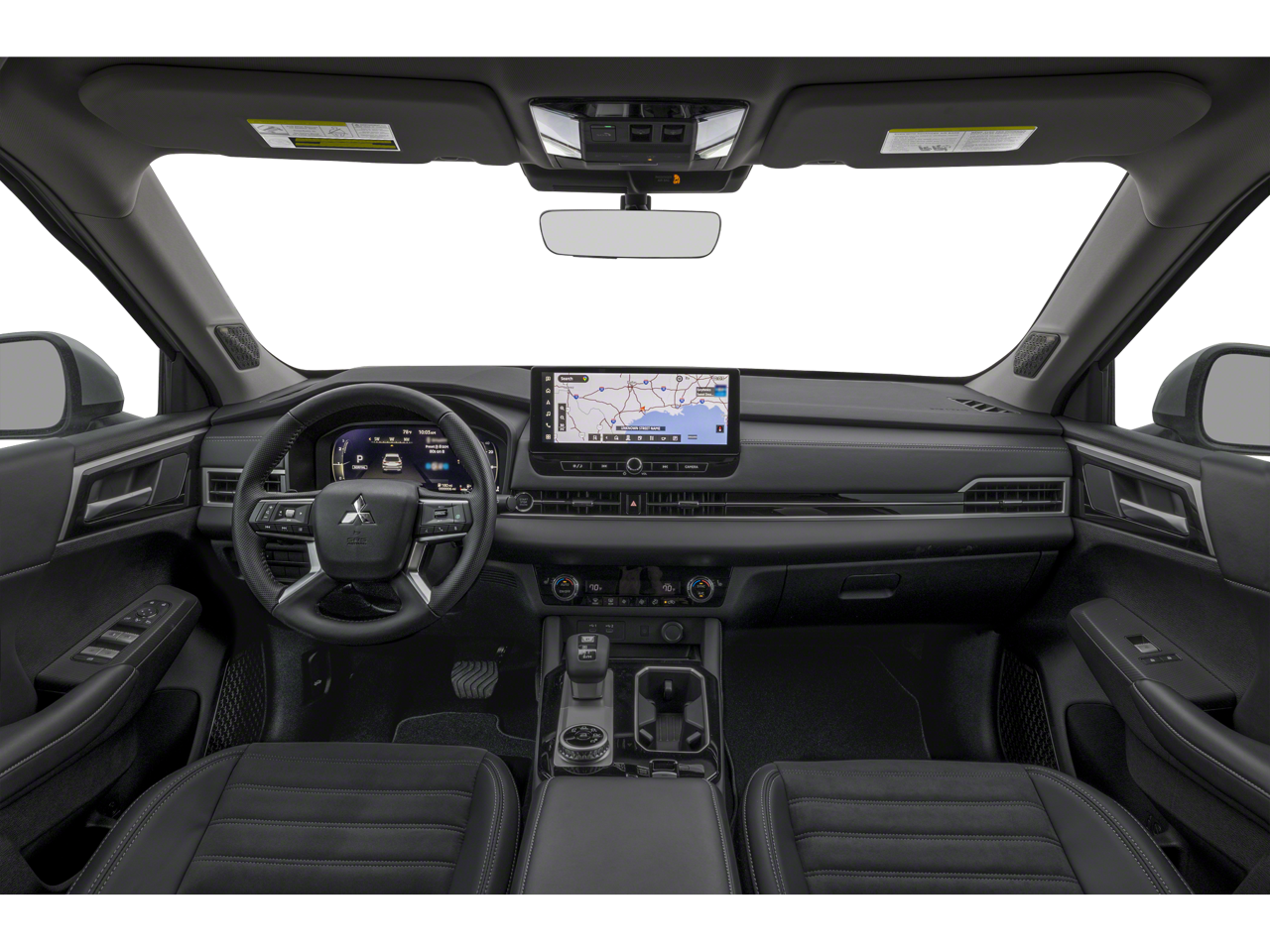 This vehicle comes equipped with: 3rd row seats: split-bench, 4-Wheel Disc Brakes, 8 Speakers, ABS brakes, Air Conditioning, Alloy wheels, AM/FM radio: SiriusXM, Android Auto & Apple CarPlay, Auto High-beam Headlights, Auto-dimming Rear-View mirror, Automatic temperature control, Brake assist, Bumpers: body-color, Driver door bin, Driver vanity mirror, Dual front impact airbags, Dual front side impact airbags, Electronic Stability Control, Emergency communication system: Mitsubishi Connect w/ 24-month trial, Exterior Parking Camera Rear, Four wheel independent suspension, Front anti-roll bar, Front Bucket Seats, Front Center Armrest w/Storage, Front dual zone A/C, Front fog lights, Front reading lights, Fully automatic headlights, Garage door transmitter: HomeLink, Heated door mirrors, Heated Front Bucket Seats, Heated front seats, Illuminated entry, Knee airbag, Leather Shift Knob, Leather steering wheel, Low tire pressure warning, Navigation System, Occupant sensing airbag, Outside temperature display, Overhead airbag, Overhead console, Panic alarm, Passenger door bin, Passenger vanity mirror, Power door mirrors, Power driver seat, Power Liftgate, Power steering, Power windows, Radio data system, Radio: AM/FM 12.3" Navigation w/Smartphone-Link, Rain sensing wipers, Rear anti-roll bar, Rear seat center armrest, Rear side impact airbag, Rear window defroster, Rear window wiper, Reclining 3rd row seat, Remote keyless entry, Security system, Speed control, Speed-Sensitive Wipers, Split folding rear seat, Spoiler, Steering wheel mounted audio controls, Synthetic Leather Seating Surfaces, Tachometer, Telescoping steering wheel, Tilt steering wheel, Traction control, Trip computer, Turn signal indicator mirrors, Variably intermittent wipers, and Wheels: 20" Two-Tone Alloy .