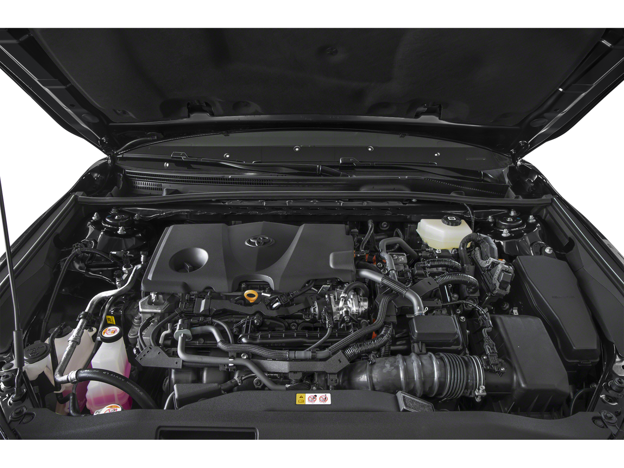 This Vehicle is nicely equipped with the following features: 2.5L 4-Cylinder 16V DOHC, Black Leather, 4-Wheel Disc Brakes, 6 Speakers, ABS brakes, Air Conditioning, Alloy wheels, AM/FM radio: SiriusXM, Apple CarPlay/Android Auto, Auto High-beam Headlights, Auto-dimming Rear-View mirror, Automatic temperature control, Brake assist, Bumpers: body-color, Delay-off headlights, Driver door bin, Driver vanity mirror, Dual front impact airbags, Dual front side impact airbags, Electronic Stability Control, Emergency communication system: Safety Connect (up to 10-year trial subscription), Exterior Parking Camera Rear, Four wheel independent suspension, Front anti-roll bar, Front Bucket Seats, Front Center Armrest, Front dual zone A/C, Front reading lights, Fully automatic headlights, Garage door transmitter: HomeLink, Heated door mirrors, Heated Front Bucket Seats, Heated front seats, Heated steering wheel, Illuminated entry, Knee airbag, Leather Seat Trim, Leather Shift Knob, Leather steering wheel, Low tire pressure warning, Occupant sensing airbag, Outside temperature display, Overhead airbag, Overhead console, Panic alarm, Panoramic Glass Roof, Passenger door bin, Passenger vanity mirror, Power door mirrors, Power driver seat, Power passenger seat, Power steering, Power windows, Radio data system, Radio: Toyota Audio Multimedia w/12.3 Touchscreen, Rear anti-roll bar, Rear reading lights, Rear seat center armrest, Rear side impact airbag, Rear window defroster, Remote keyless entry, Security system, Speed control, Speed-sensing steering, Split folding rear seat, Spoiler, Steering wheel mounted audio controls, Telescoping steering wheel, Tilt steering wheel, Traction control, Trip computer, Turn signal indicator mirrors, Two-Tone Exterior Color, Variably intermittent wipers, and Wheels: 19 Smoke Gray & Black-Finished Alloy.