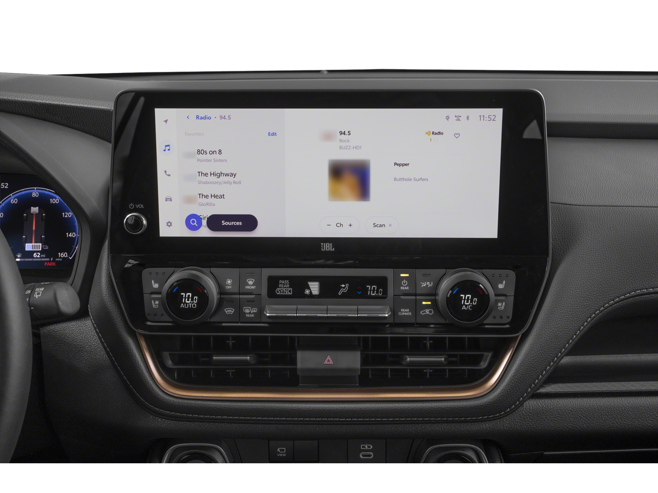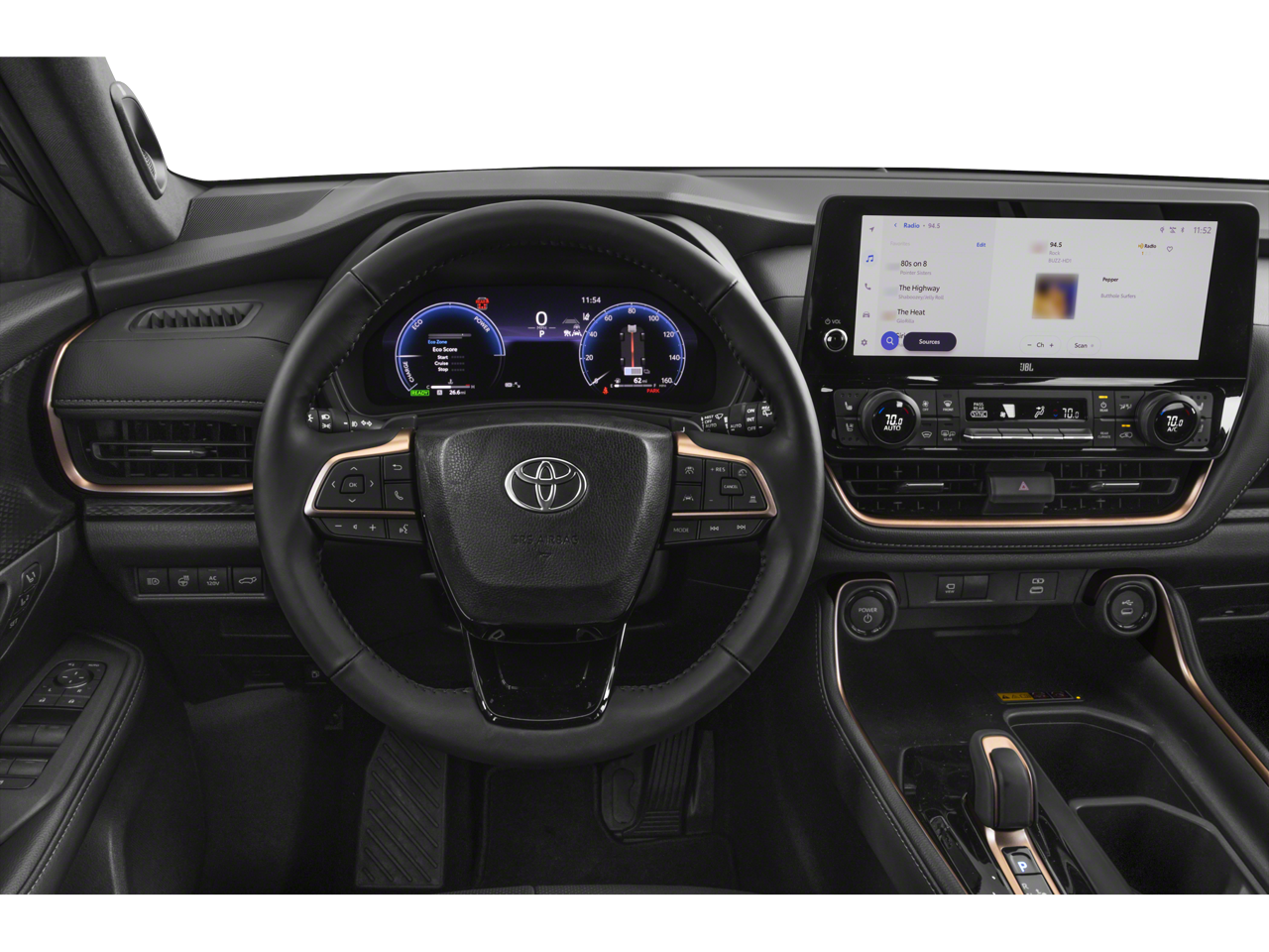This Vehicle is nicely equipped with the following features: 2.4L 4-Cylinder, 11 Speakers, 3rd row seats: split-bench, 4-Wheel Disc Brakes, ABS brakes, Air Conditioning, Alloy wheels, AM/FM radio: SiriusXM, Apple CarPlay/Android Auto, Auto High-beam Headlights, Auto-dimming Rear-View mirror, Automatic temperature control, Brake assist, Bumpers: body-color, Delay-off headlights, Driver door bin, Driver vanity mirror, Dual front impact airbags, Dual front side impact airbags, Electronic Stability Control, Emergency communication system: Safety Connect (up to 10-year trial subscription), Exterior Parking Camera Rear, Four wheel independent suspension, Front anti-roll bar, Front Bucket Seats, Front Center Armrest, Front dual zone A/C, Front fog lights, Front reading lights, Fully automatic headlights, Garage door transmitter: HomeLink, Heated and Ventilated Front Seats, Heated door mirrors, Heated front seats, Heated rear seats, Heated steering wheel, Illuminated entry, Knee airbag, Leather Shift Knob, Leather steering wheel, Low tire pressure warning, Memory seat, Navigation system: Drive Connect Cloud Navigation (1-year trial subscription), Occupant sensing airbag, Outside temperature display, Overhead airbag, Overhead console, Panic alarm, Passenger door bin, Passenger vanity mirror, Power door mirrors, Power driver seat, Power Liftgate, Power passenger seat, Power steering, Power windows, Radio: 12.3" Toyota Audio Multimedia with JBL Audio, Rain sensing wipers, Rear air conditioning, Rear anti-roll bar, Rear reading lights, Rear window defroster, Rear window wiper, Reclining 3rd row seat, Remote keyless entry, Security system, Speed control, Speed-sensing steering, Split folding rear seat, Spoiler, Steering wheel mounted audio controls, Telescoping steering wheel, Tilt steering wheel, Traction control, Trip computer, Turn signal indicator mirrors, Ultrasuede/Leather Seat Trim, Variably intermittent wipers, Ventilated front seats, and Wheels: 20" 2-Tone Multi-Spoke Aluminum. 26/27 City/Highway MPG
